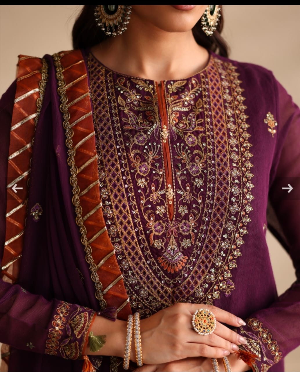 Brand Sapphire 3 PC Embroidered Blanded Net Suit